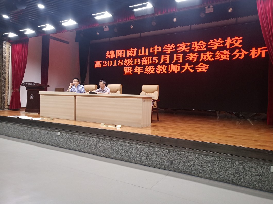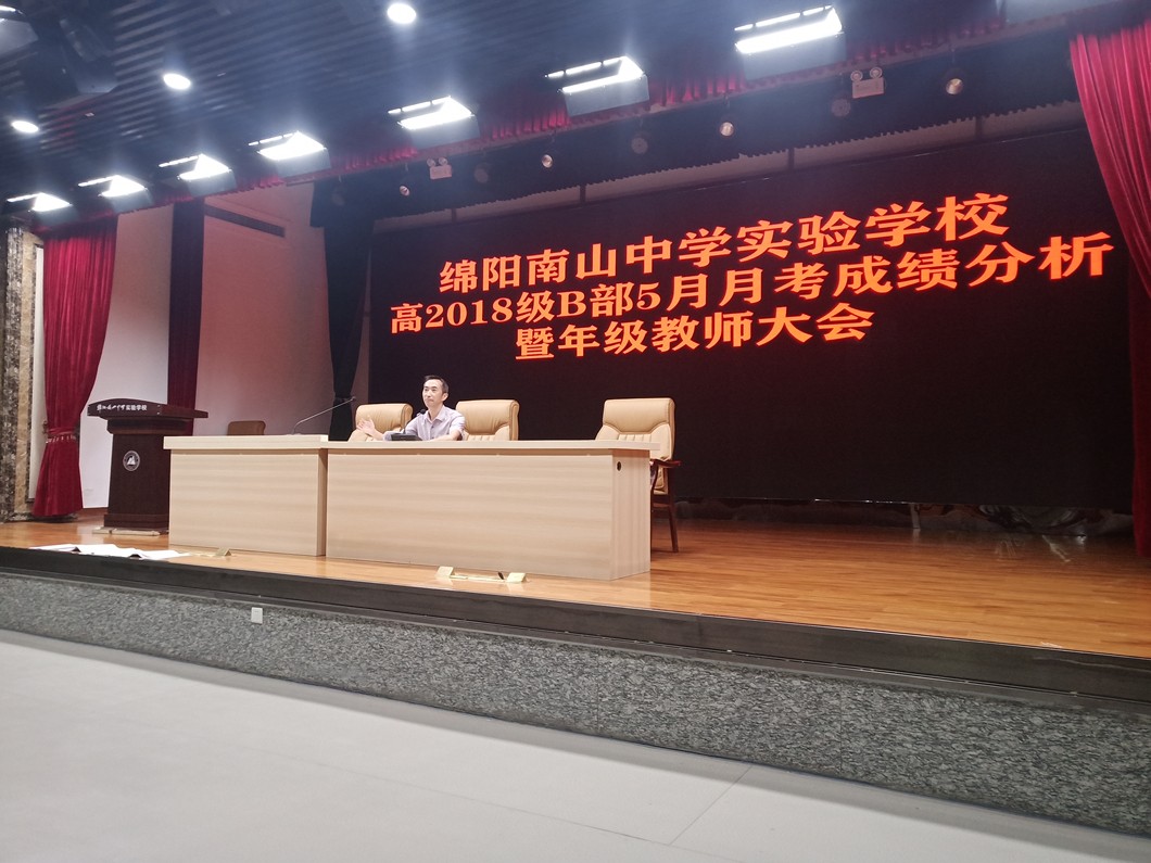 5月20日17点15分,高2018级B部年级组在第二学术厅组织召开了高二(下)5月月考成绩分析会暨年级教师大会,年级全体教师出席会议。会议年级教学主任唐平老师任主持,年级第一责任人赵福生主任作重要讲话。