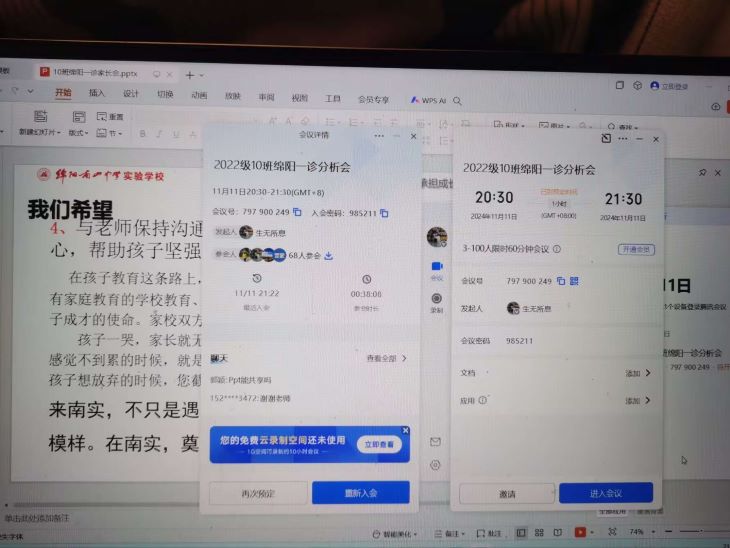 11月8日至11月16日,高2022级各位班主任利用课余时间组织了各班线上家长会。各位班主任老师主要从新高考考试方式、评价方式等角度,结合本班学生的实际情况与家长进行了细致全面的沟通。家校同心,其力断金。