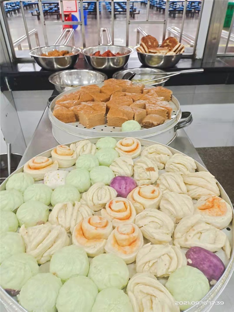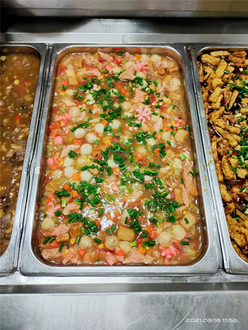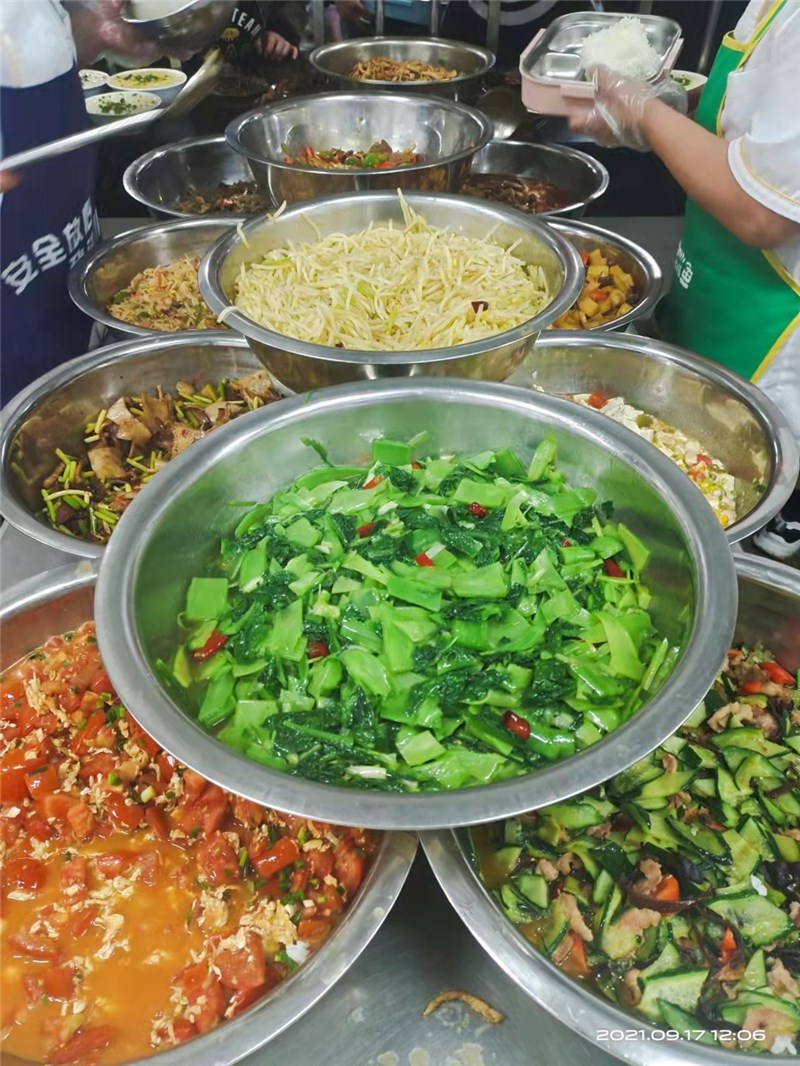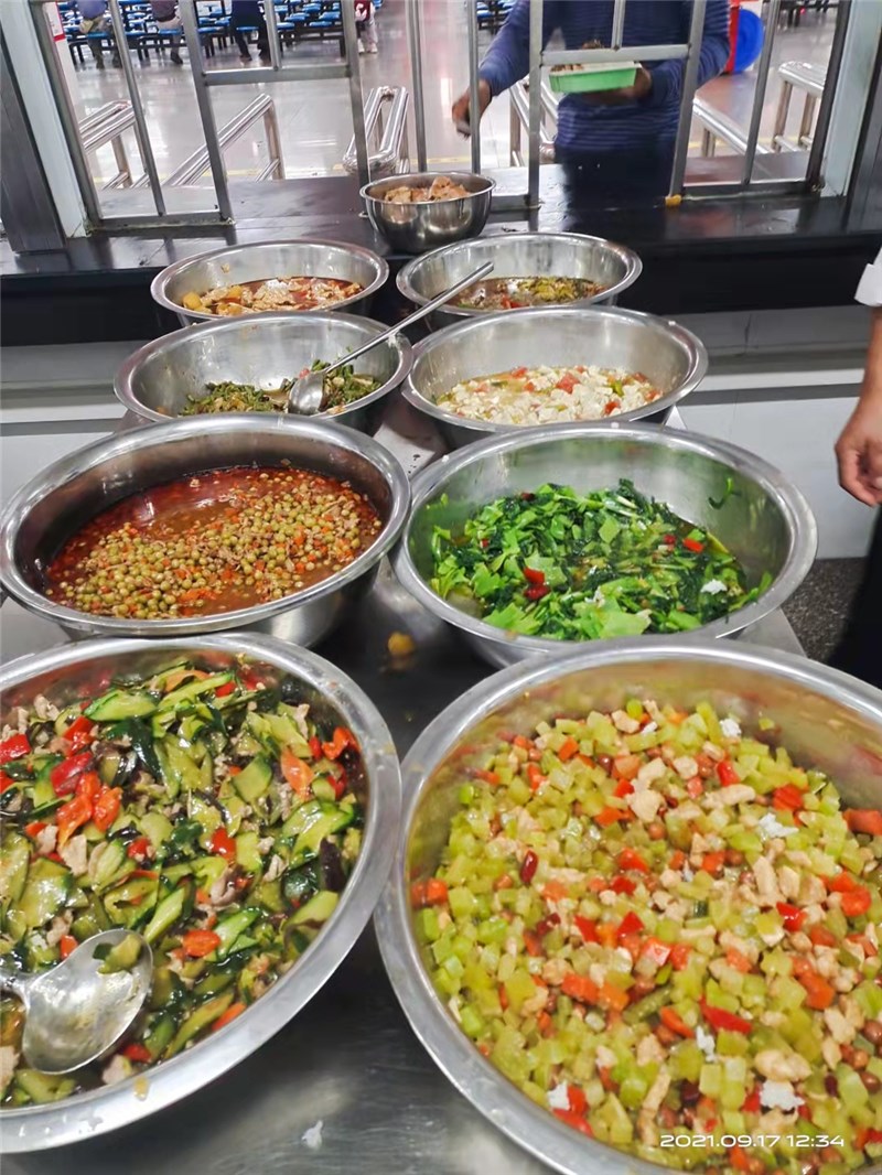 正常行课期间,各就餐楼层售卖窗口均备有充足、多品种、多口味的热饭菜供学生购买。其中早、晚餐(素菜、米粉、稀饭、肉包、馒头、花卷、牛奶、面包、炒菜、炒饭、面条、水饺、煎饼等不少于15个品种),午餐(各种大炒、小炒、盖浇、蒸菜等不低于20个品种),同时考虑到营养均衡,做到菜品合理搭配。随着就餐时间的推移,某些品种就会提前卖完,建议同学们不要挑食偏食,不能因为没有自己喜欢的食品就放弃就餐,这样不仅会危害同学们自己的身体健康,同时也会造成食堂错误判断用餐量,影响正常的饭菜供应。食堂也会通过调查了解学生的口味,增加同学们喜欢食品的供应量。