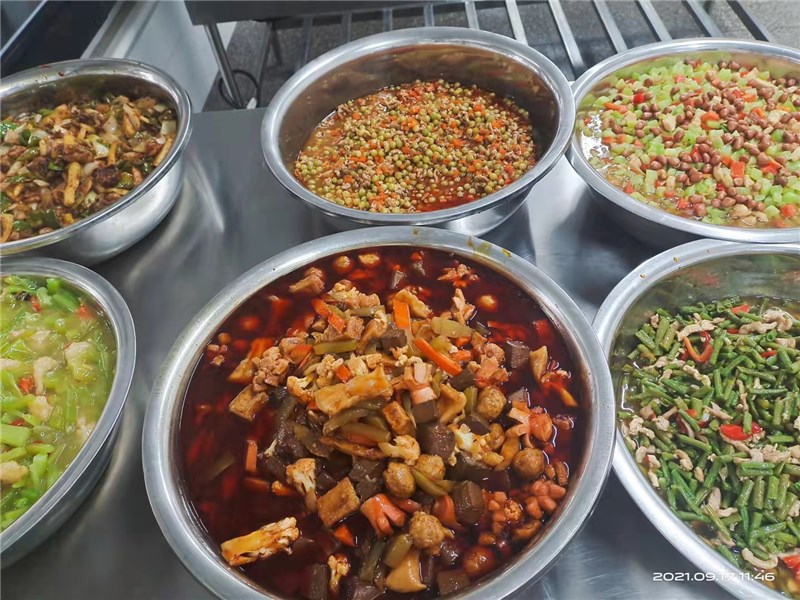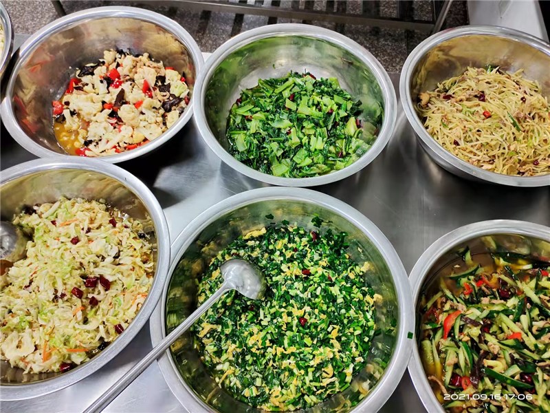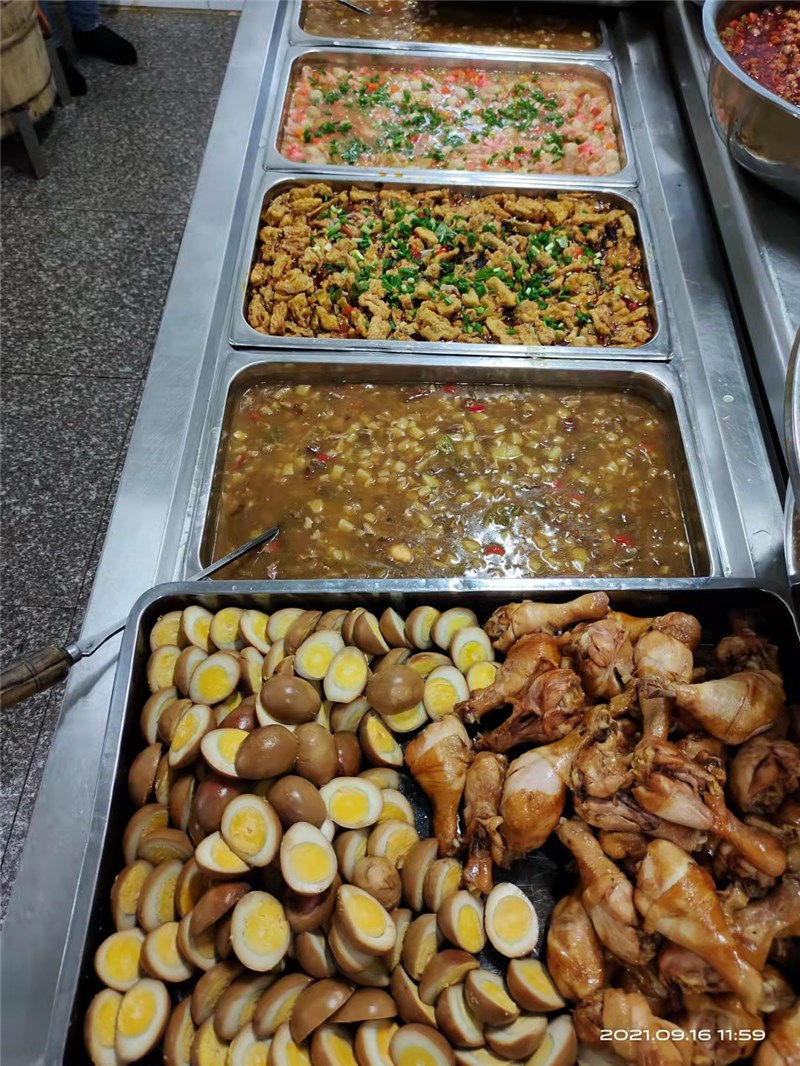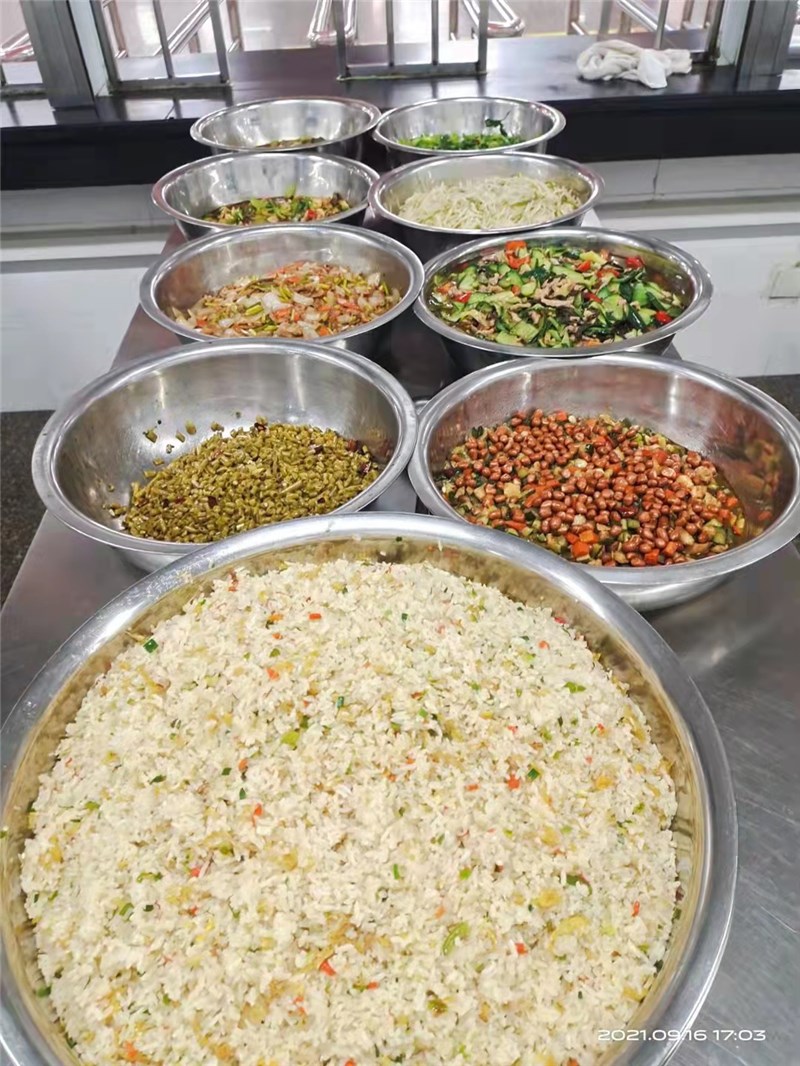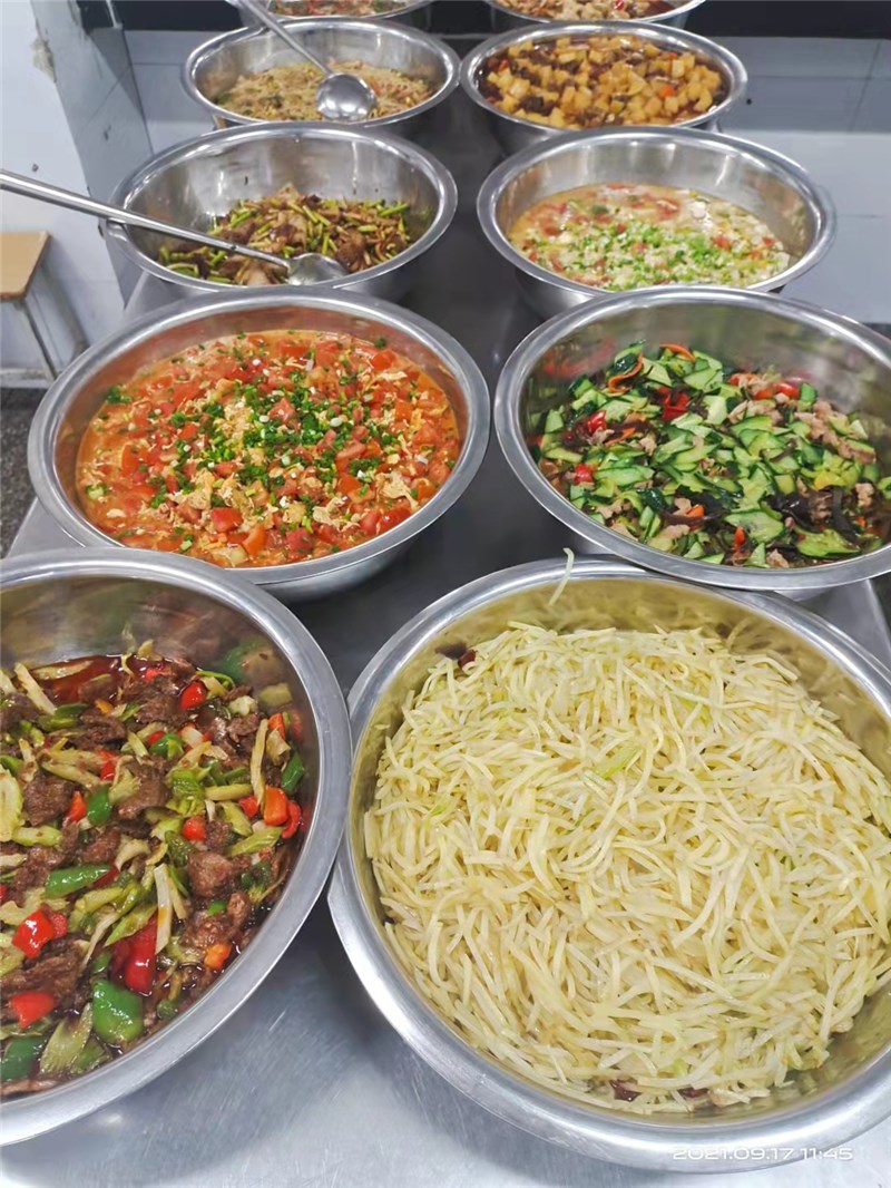 正常行课期间,各就餐楼层售卖窗口均备有充足、多品种、多口味的热饭菜供学生购买。其中早、晚餐(素菜、米粉、稀饭、肉包、馒头、花卷、牛奶、面包、炒菜、炒饭、面条、水饺、煎饼等不少于15个品种),午餐(各种大炒、小炒、盖浇、蒸菜等不低于20个品种),同时考虑到营养均衡,做到菜品合理搭配。随着就餐时间的推移,某些品种就会提前卖完,建议同学们不要挑食偏食,不能因为没有自己喜欢的食品就放弃就餐,这样不仅会危害同学们自己的身体健康,同时也会造成食堂错误判断用餐量,影响正常的饭菜供应。食堂也会通过调查了解学生的口味,增加同学们喜欢食品的供应量。