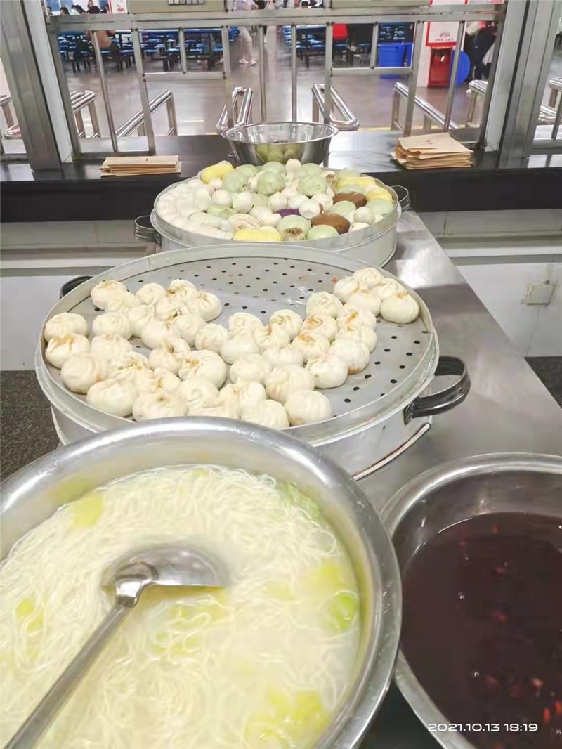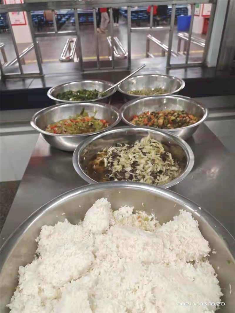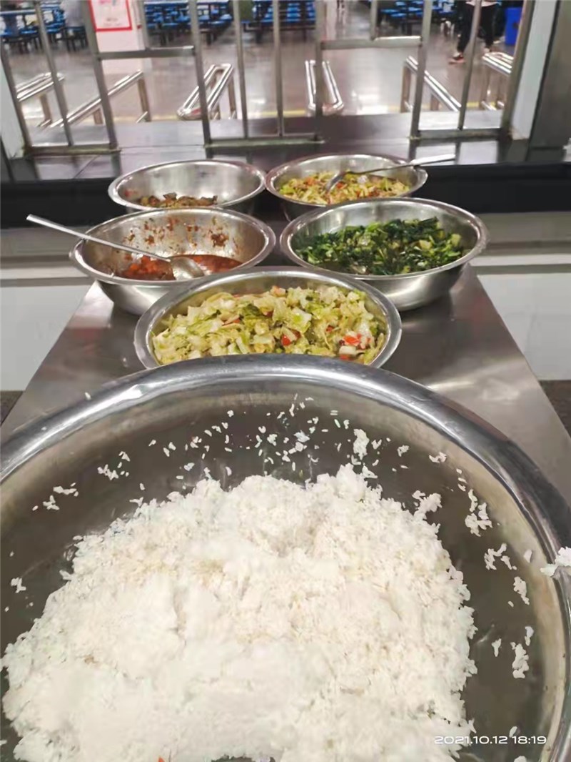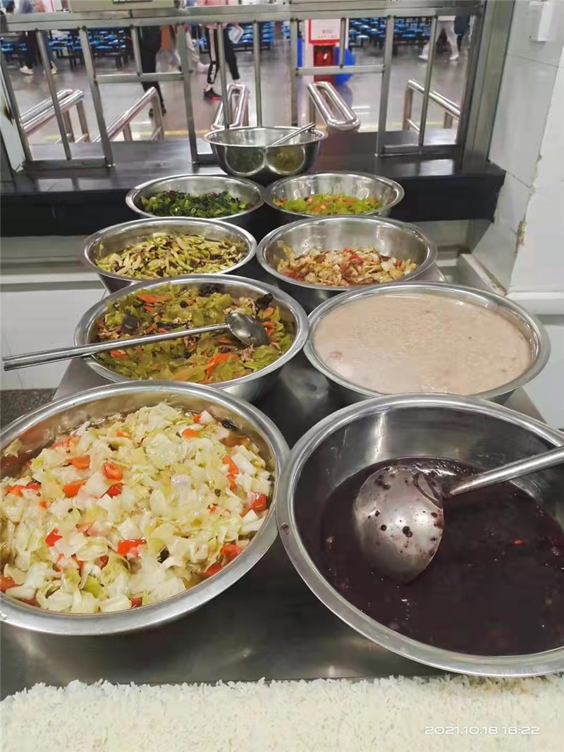 学校食堂每餐均会备够足量可口的饭菜,菜品搭配合理、营养均衡。学生在规定时间到食堂就餐均能吃上热饭菜。