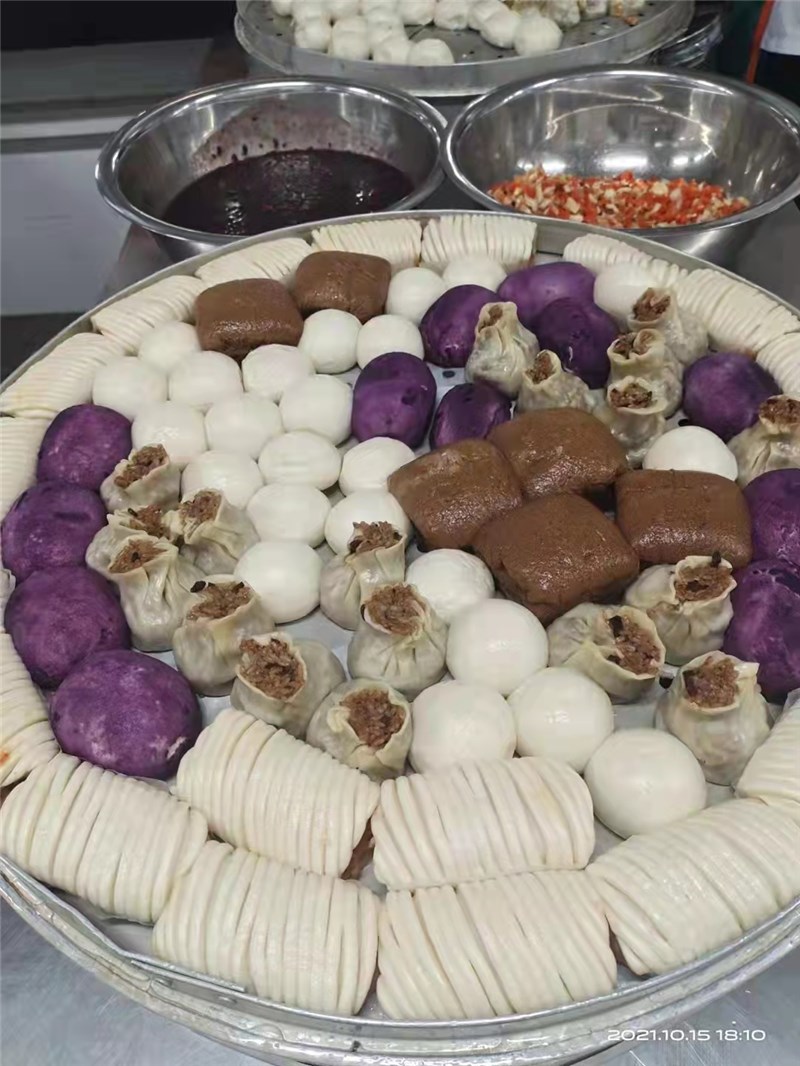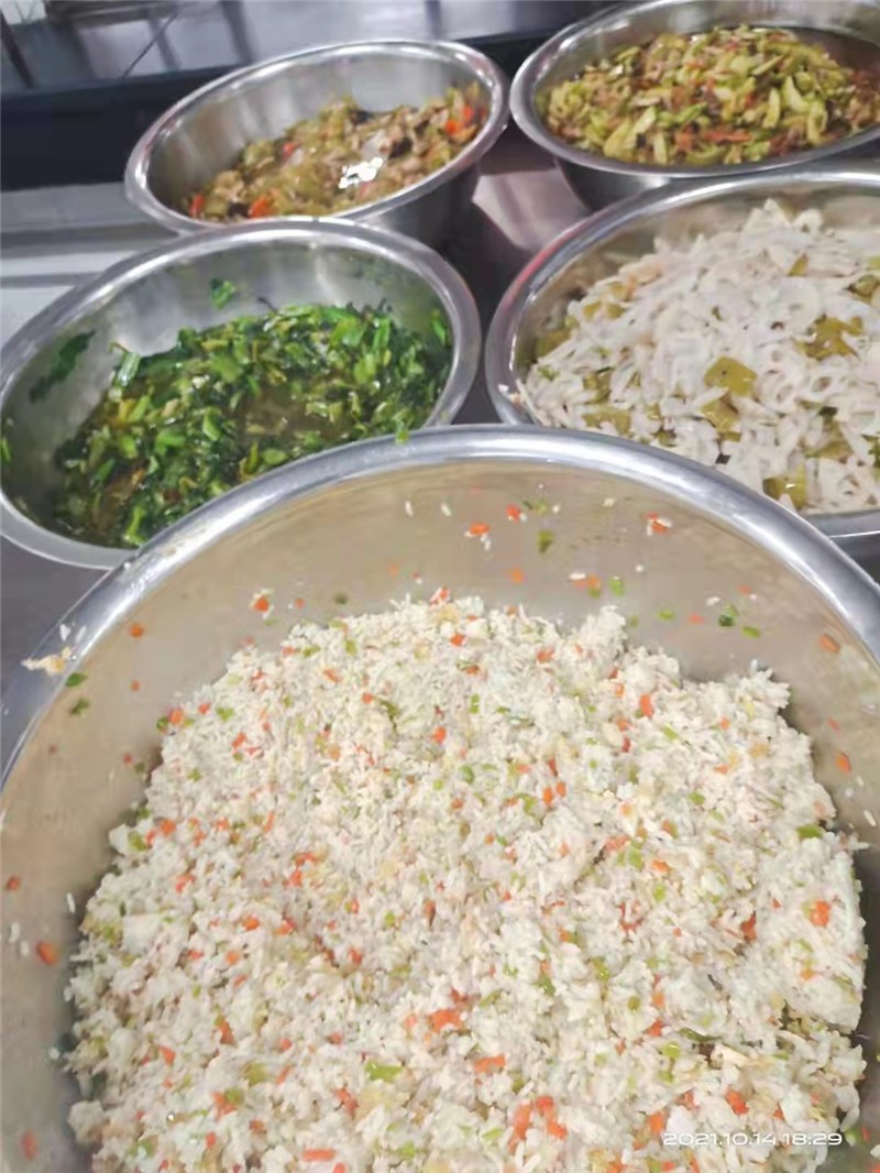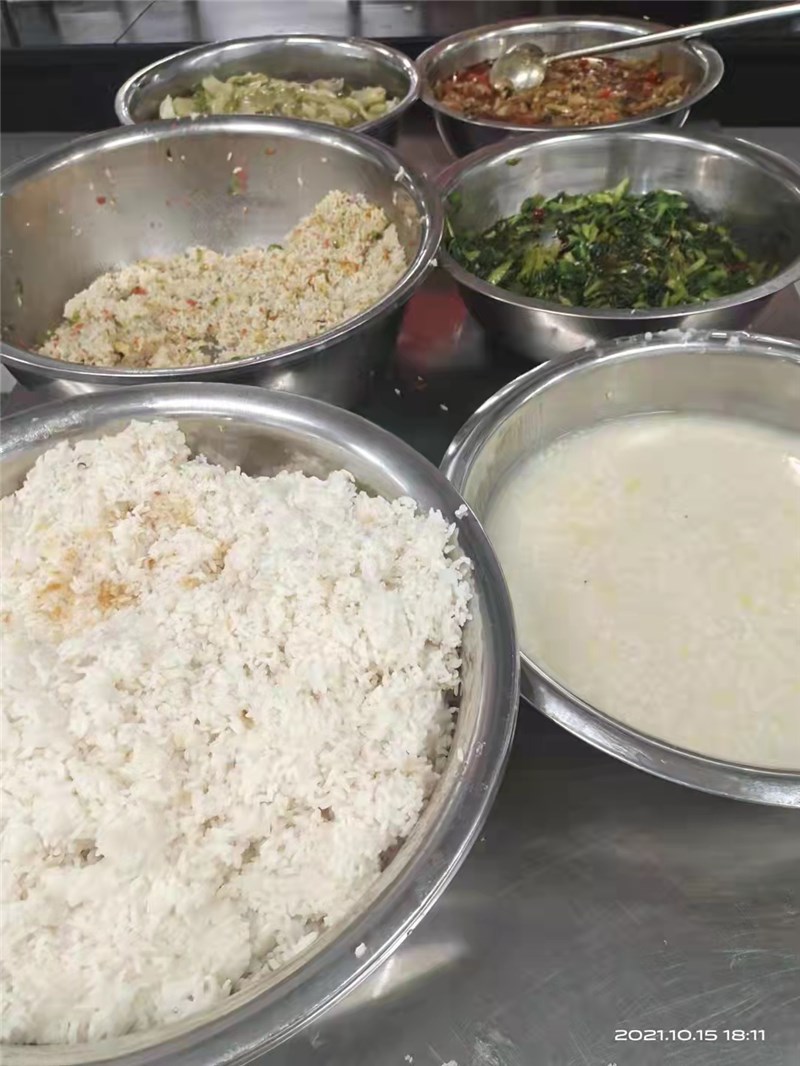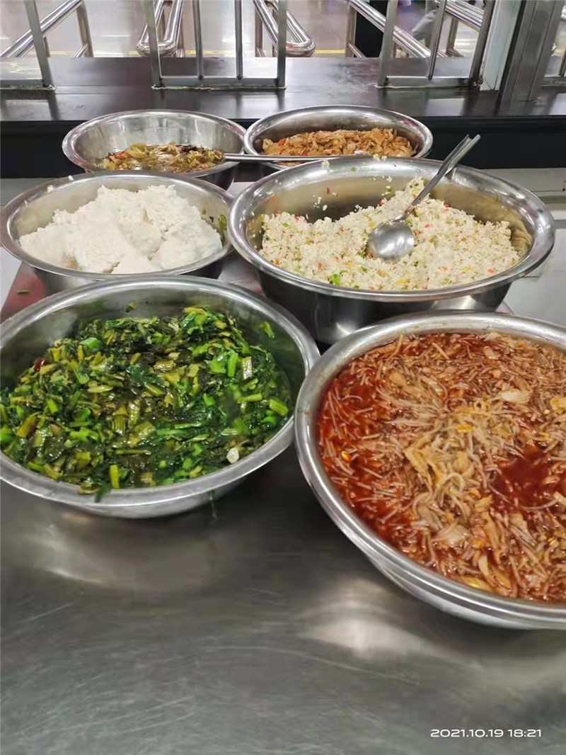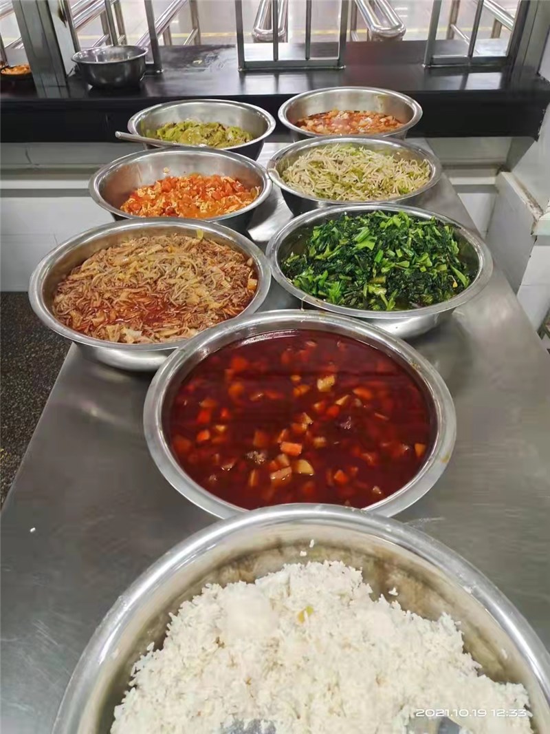 学校食堂每餐均会备够足量可口的饭菜,菜品搭配合理、营养均衡。学生在规定时间到食堂就餐均能吃上热饭菜。