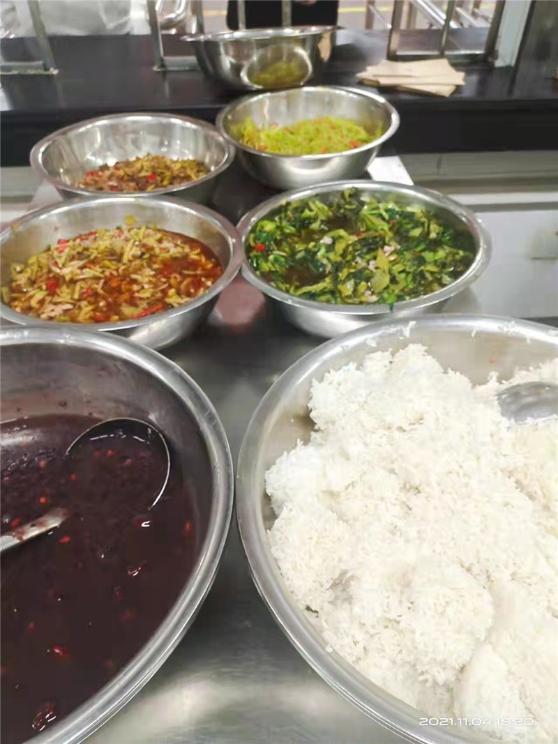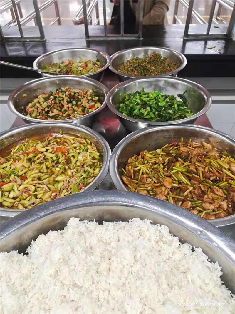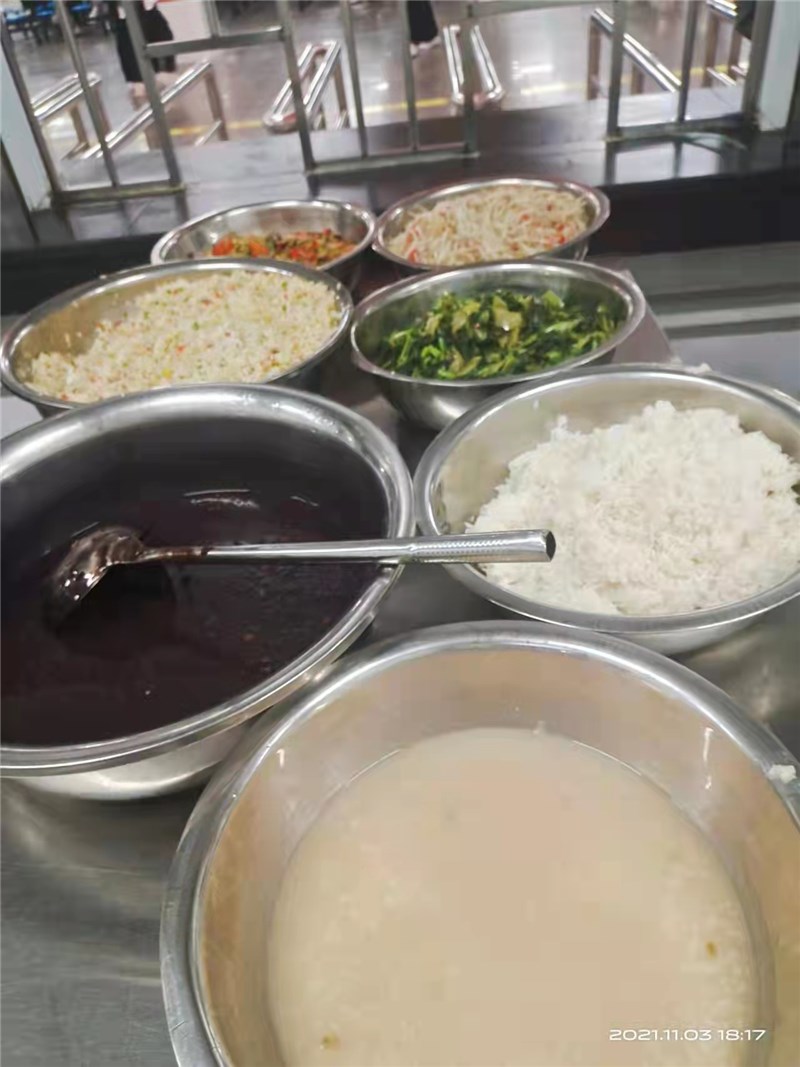 学校食堂每餐均会备够足量可口的饭菜,菜品搭配合理、营养均衡。学生在规定时间到食堂就餐均能吃上热饭菜。