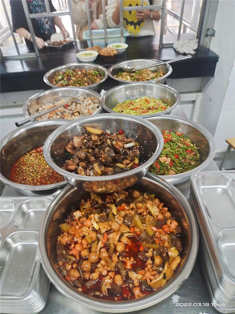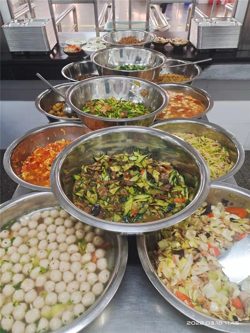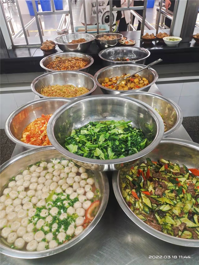 学校食堂每餐均会备够足量可口饭菜,菜品搭配合理、营养均衡。学生在规定时间到食堂就餐均能吃上热饭菜。