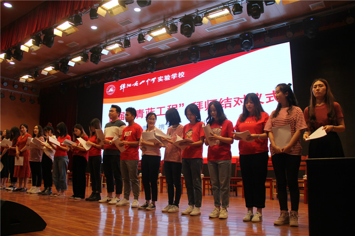 薪火相传,青蓝相接。一枝独放不是春,百花齐放春满园。师徒结对构建的是互学共进的团队、打造的是凝心聚力的文化。学校将建立和健全师徒结对的过程管理和考核评价体系,发挥学科带头人、骨干教师的传帮带作用,使“青蓝”工程成为学校教育教学的闪亮名片。相信短暂的拜师仪式之后,一对对师徒将在周而复始的平凡工作中,互勉共进,结下深厚的师徒情谊,成为一生的良师益友。