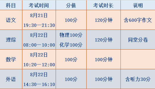 2、考试时间:8月21日晚上和22日全天。