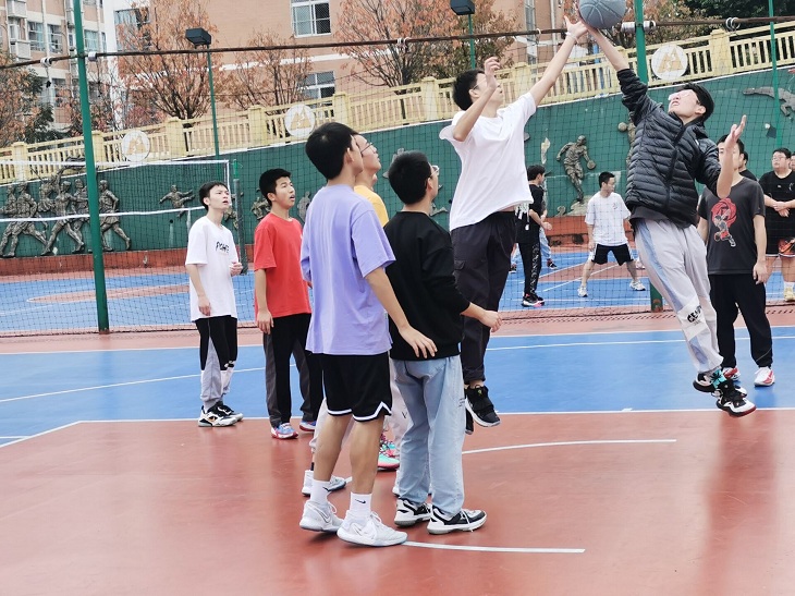 白天,在体育组老师们的组织之下,按照不大规模聚集的要求,按班分组进行趣味运动会,包括拔河比赛、迎面接力、袋鼠跳、自由项目等活动。一个个奔跑的身影、一张张写满开心快乐的脸,助威声、呐喊声交织在一起,同学们紧绷已久的神经终于得到了有效放松。